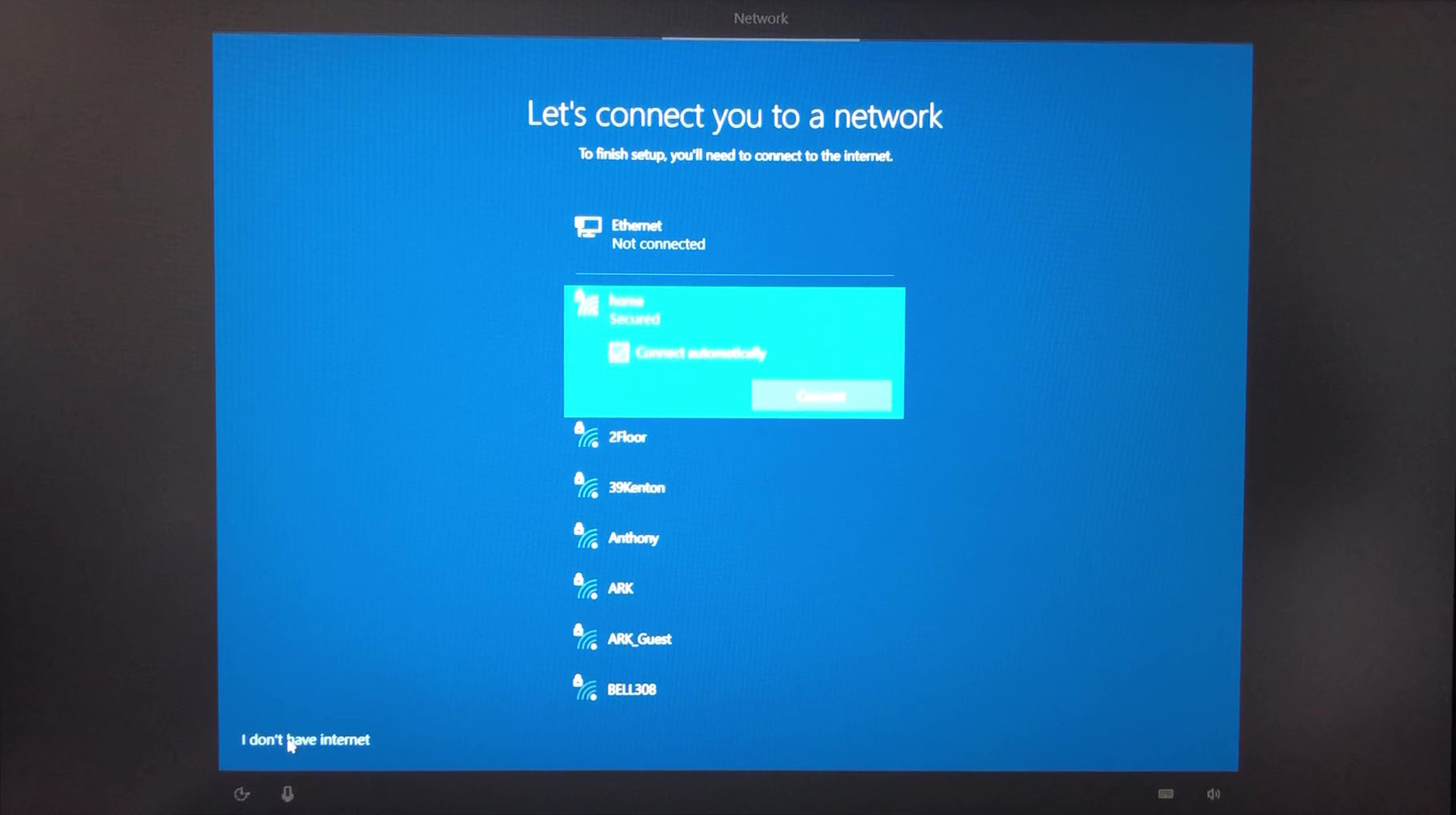 For Windows 10 Home: DO NOT connect to a network at this point, otherwise, you will be stuck creating a Microsoft account instead of a local one.