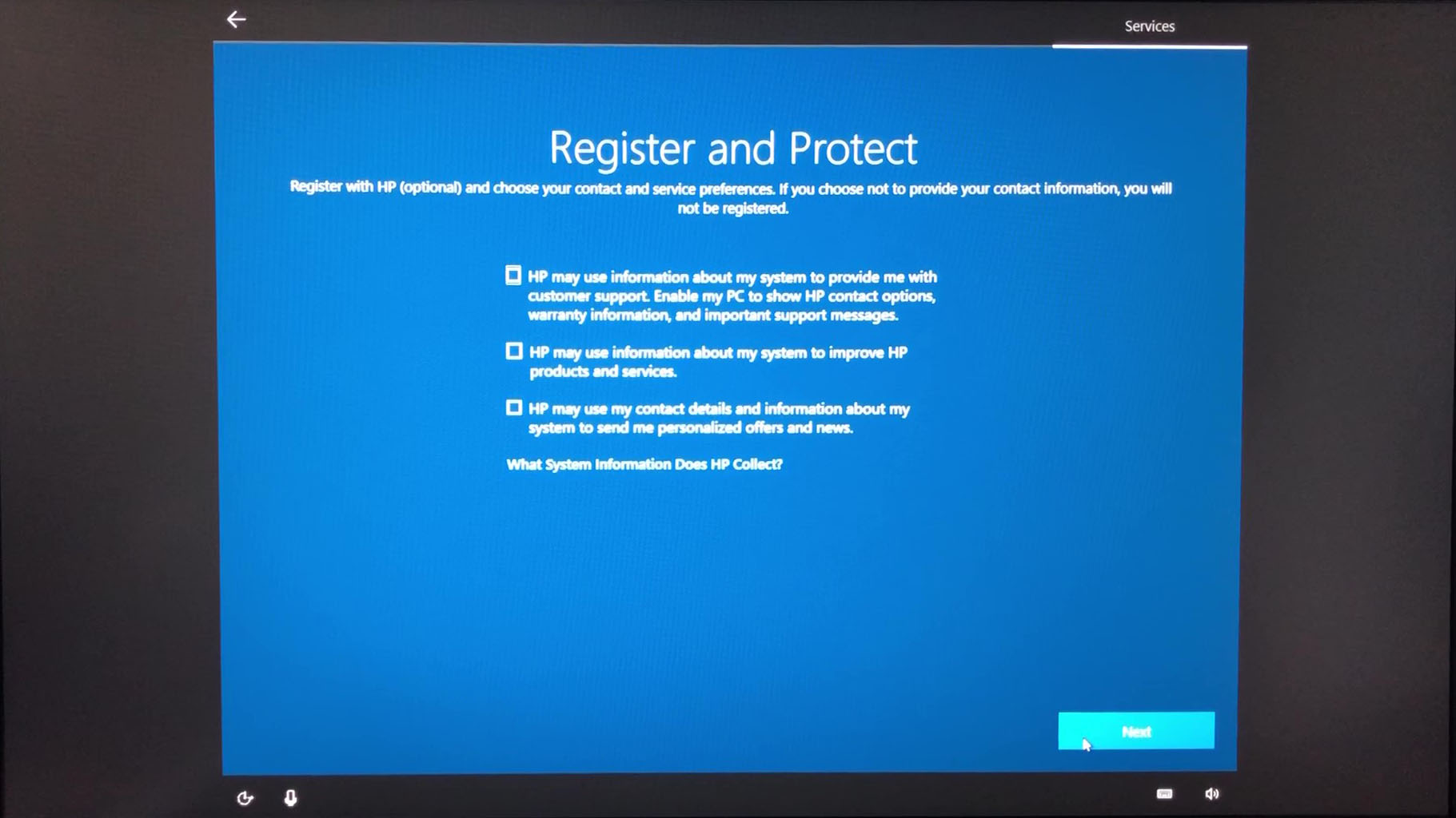 These screens may vary, depending on your hardware. You can fill them out, or skip them.