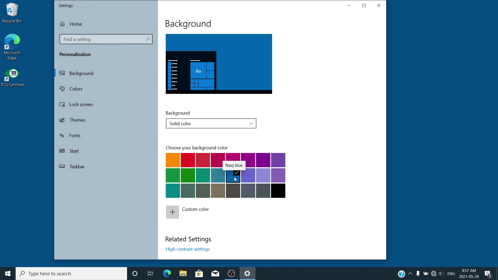 Set the standard look for the computer (when logged in as the administrator) for easier troubleshooting when dealing with many computers. I also set the background to a solid colour.