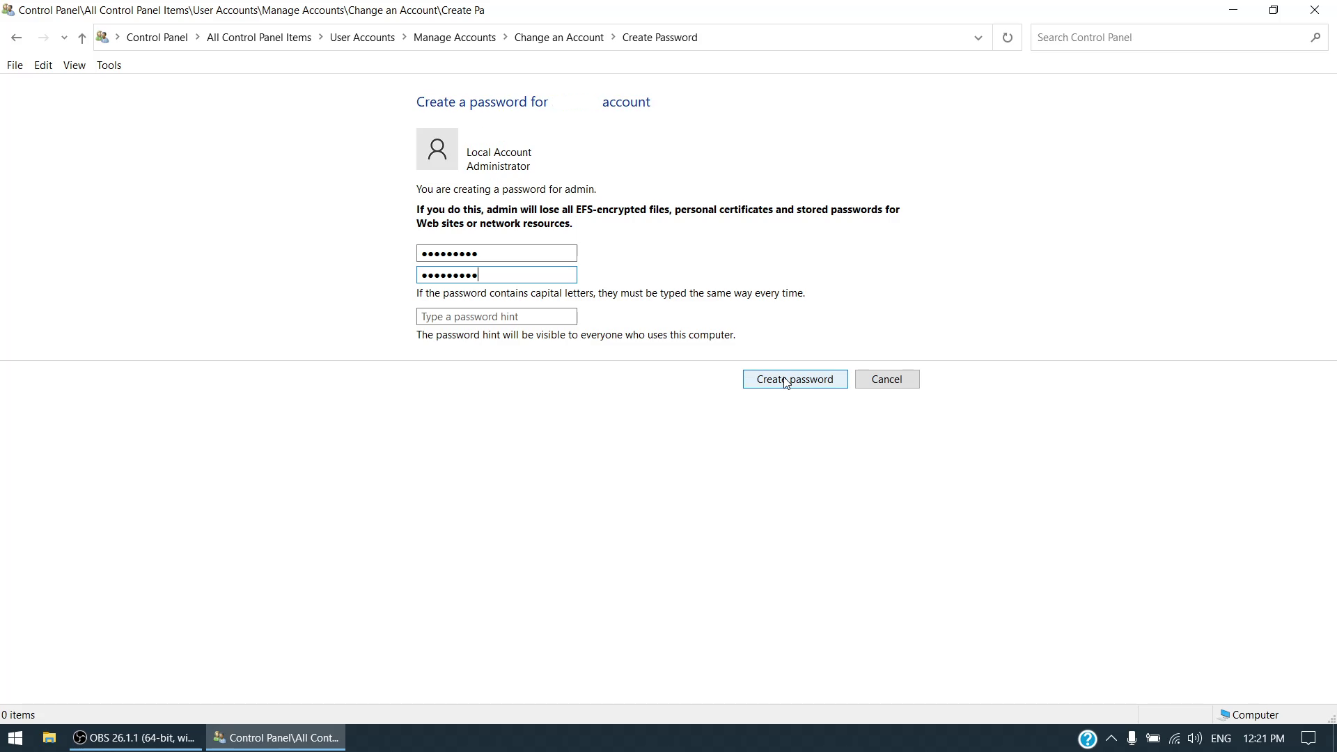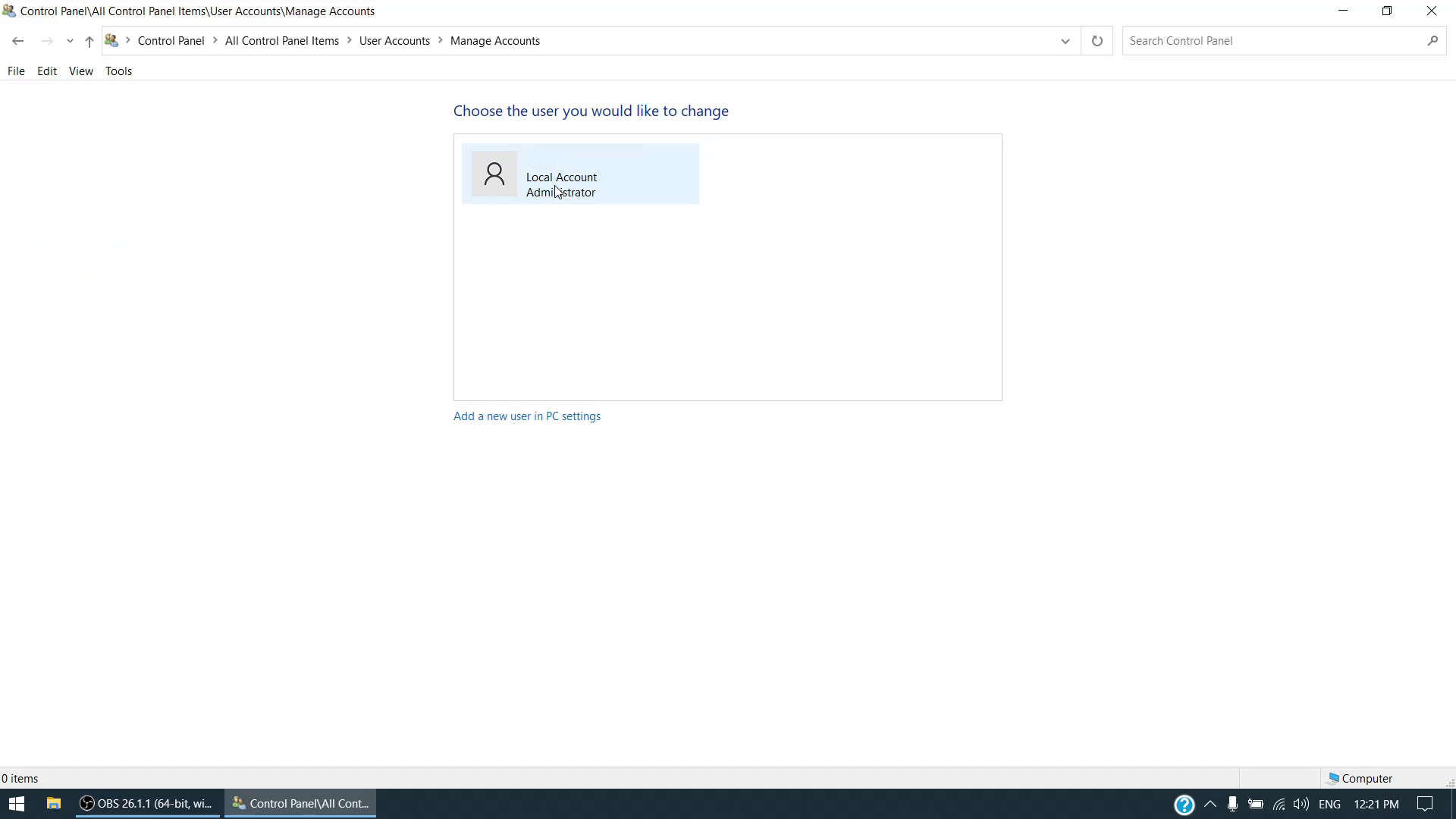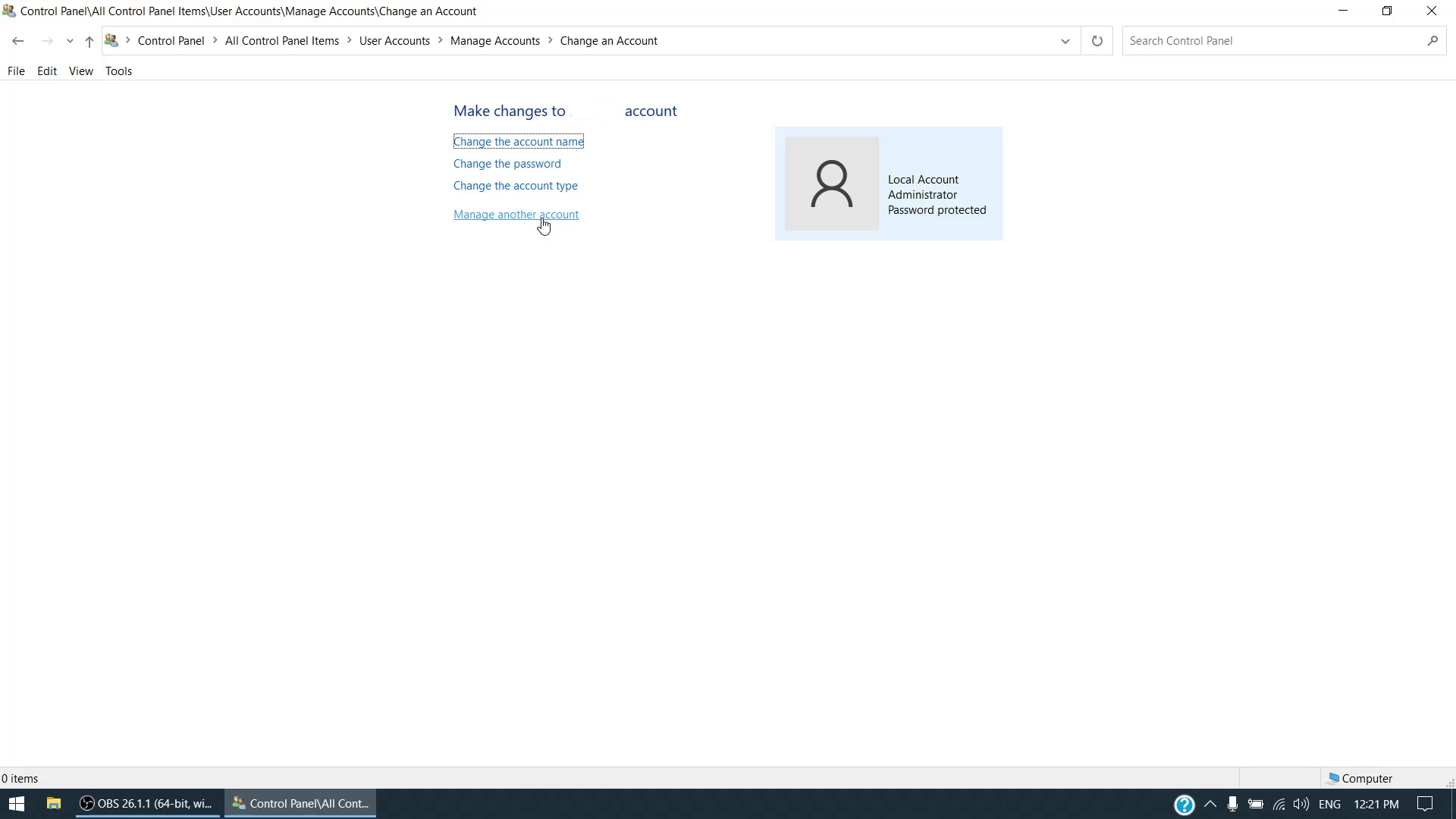 For this 2nd Administrator account, change the account type to Administrator from User.