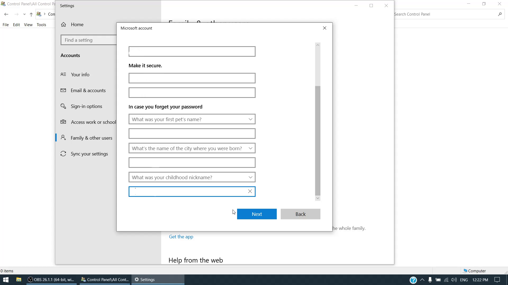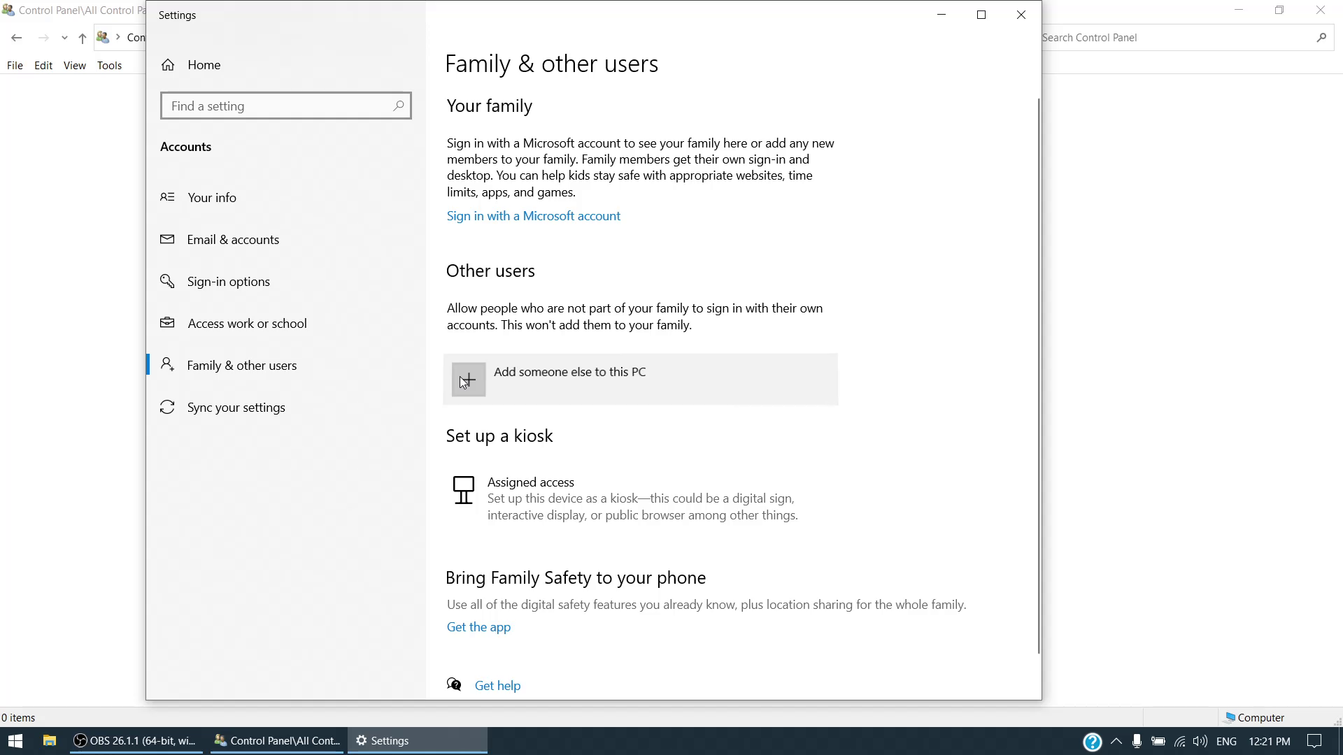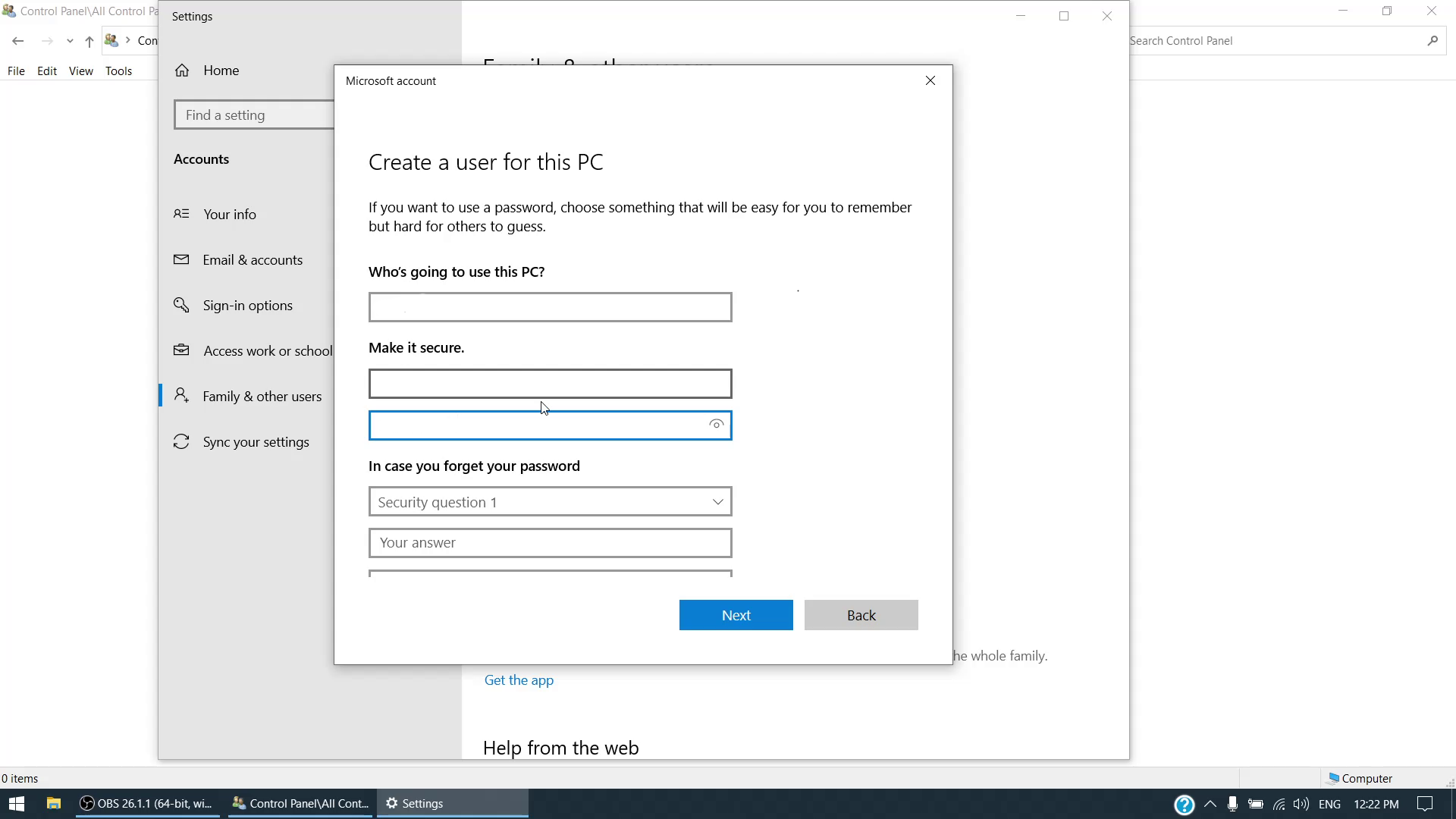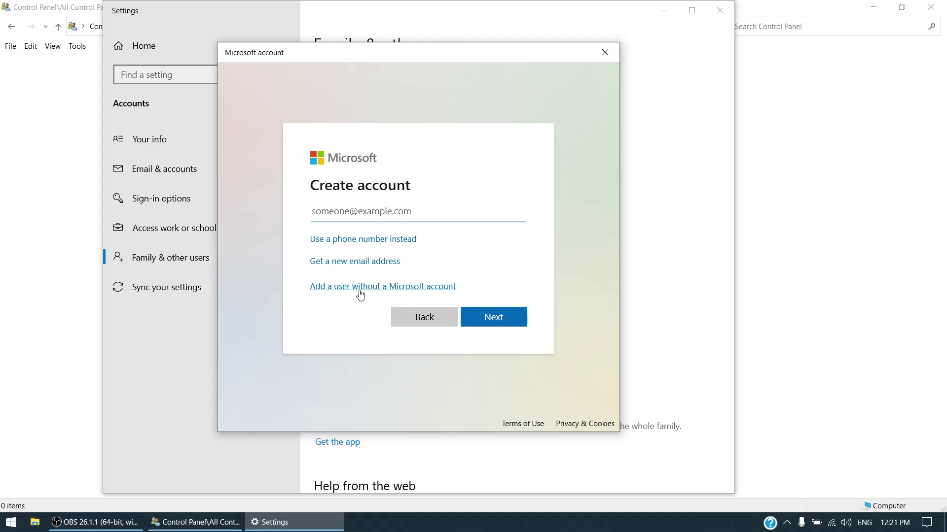 ***Note 2 *** If you are using Microsoft products (Office, Onedrive, Teams), you may want to tie the user to a Microsoft account for easier login management. (it's not necessary though).