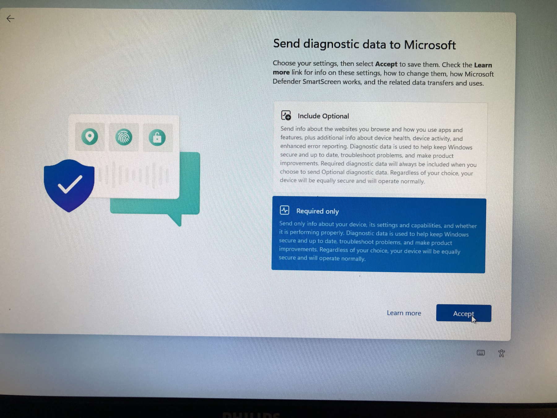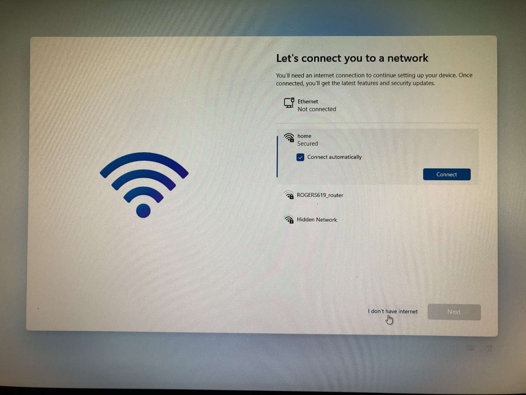 *** For Win 11 Home: DO NOT connect to a network at this point, otherwise, you will be stuck creating a Microsoft account instead of a local one. Follow